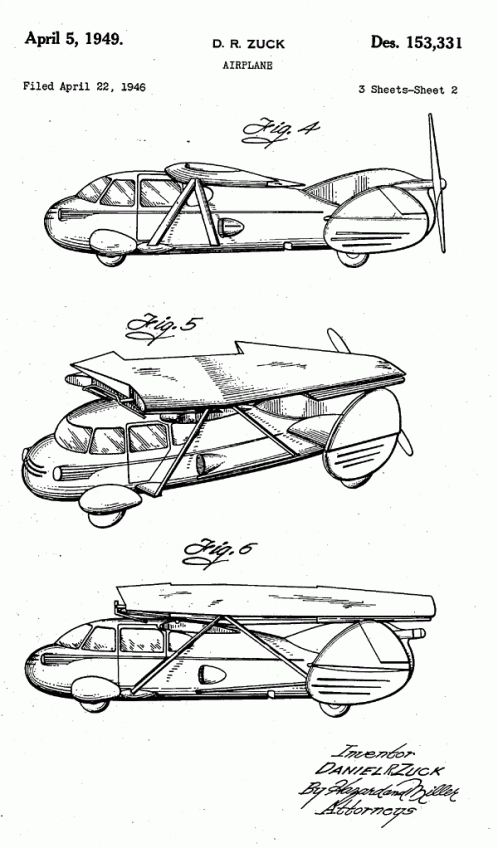 Another view from the Daniel R. Zuck ornamental airplane patent awarded in 1949.
