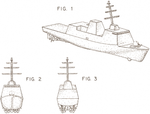 The patent for this corvette was assigned to Ingalls Shipbuilding in 2006. A corvette is smaller than a destroyer, fast and frequently used for anti-submarine operations.