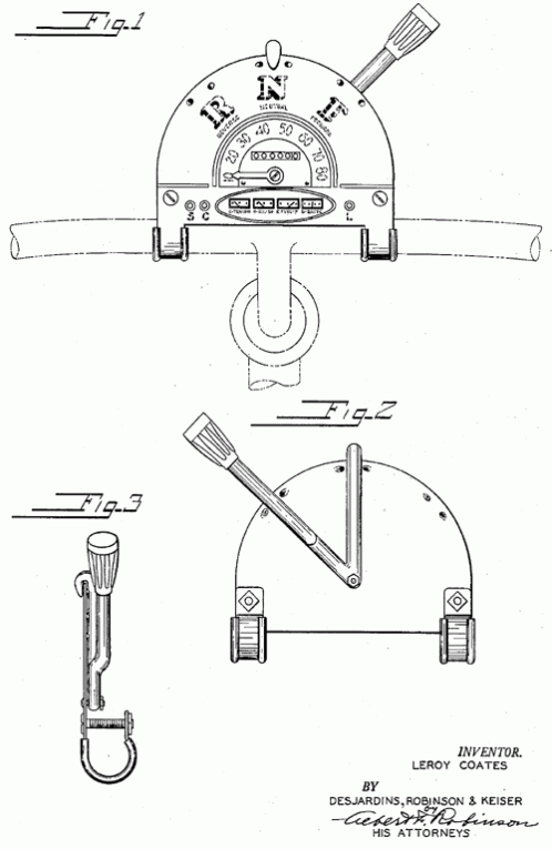 A toy instrument panel for bicycle handle bars. 1954. Invented by Leroy Coates.