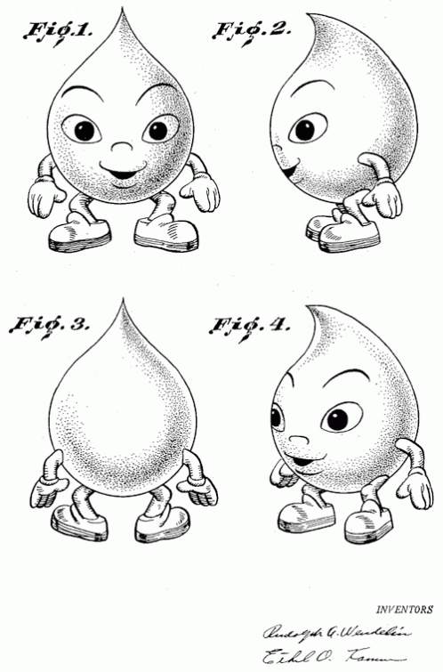 Meet Junior Raindrop, a hoodlum water drop who joins a gang in the hilarious 1948 animated Forest Service film The Adventures of Junior Raindrop. This patent design is for a Junior doll and was illustrated by Rudolph Wendelin, who is most famous for his drawings of Smokey the Bear. Be sure to watch the film and find out what happens to outlaw Junior.