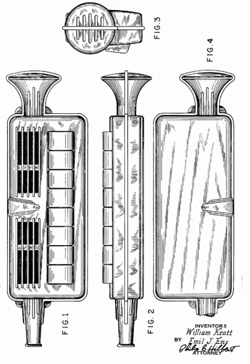 A "Keymonica" musical instrument for the Wm. Kratt Co. 1953. Invented by William Kratt and Emil J. Ens.