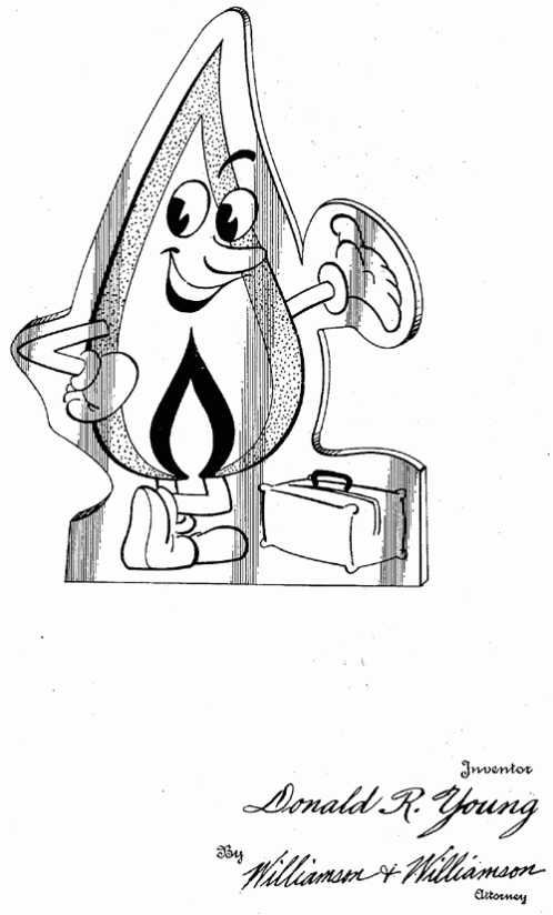 This flame is packed and ready to go in a plaque design for Jiffy Jet of Minneapolis. 1948. Invented by Donald R. Young.