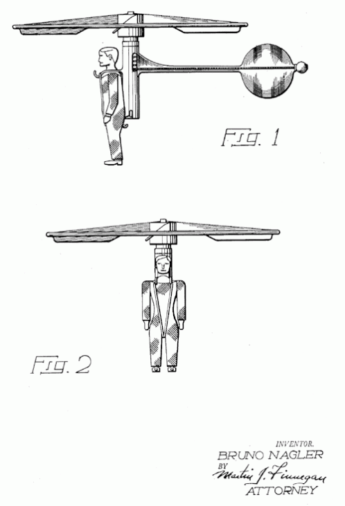 A design for a toy single-seat helicopter. Austrian inventor Bruno Nagler also had plans for a full, working version of this design. 1954. Invented by Bruno Nagler.