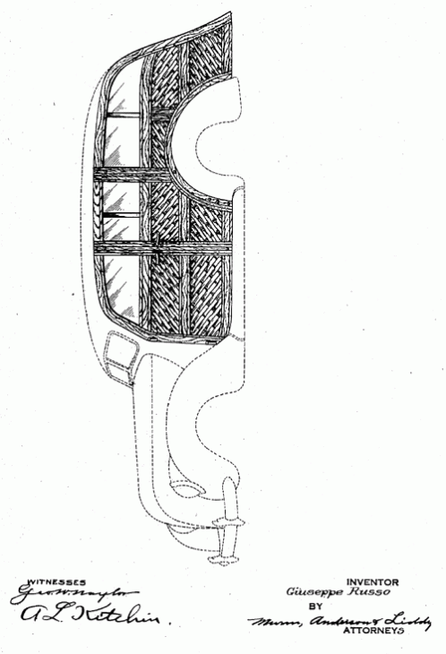 "Be it known that I, Giuseppe Russo, a subject of the King of Italy (having declared his intentions of becoming a citizen of the United States), and a resident of the city of New York . . . have invented a new, original and ornamental Design for a Vehicle Body." 1938. Invented by Giuseppe Russo.