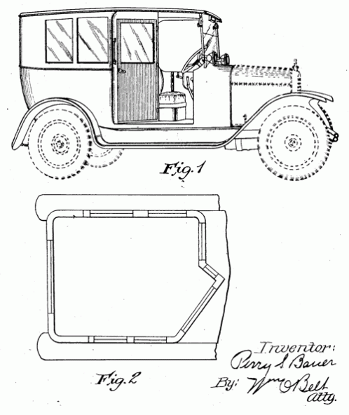 A taxicab design for the Bauer Taxicab Manufacturing Turing Co., of Chicago. 1926. Invented by Perry S. Bauer.