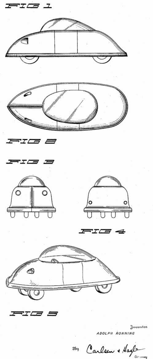 An ornamental automobile design. 1951. Invented by Adolph Ronning.