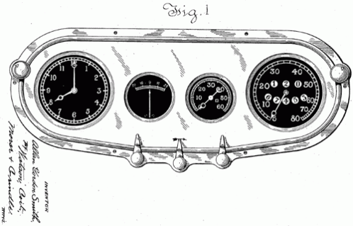 An instrument board panel design by S. Smith & Sons (Motor Accessories) Limited of London, England. The company was originally a maker of watches and other precision instruments, but they adapted their business to the needs of the emerging automobile market. 1927. Invented by Allan Gordon Smith.