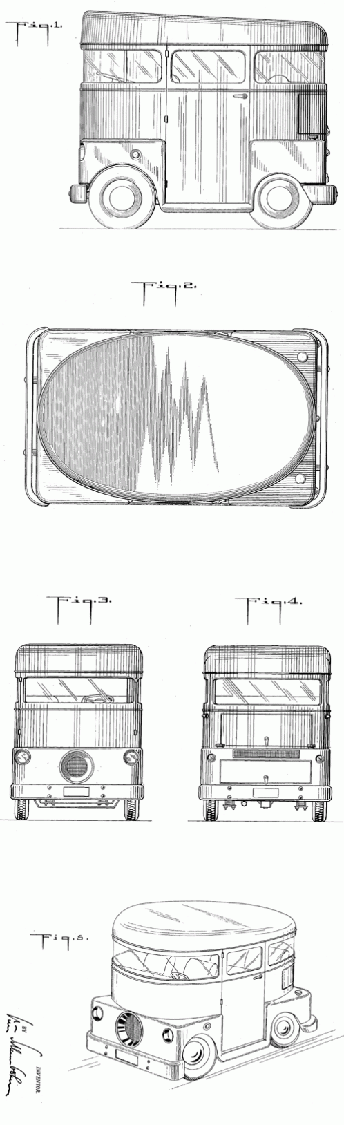 The Chemobile designed by chemist Peter Schlumbohm featured a wrap-around windshield. Schlumbohm described the passenger compartment, which was placed over the powertrain, as being "rather analogous to a man riding a horse or to a maharajah riding in a basket on top of an elephant." We guess it bounced around a lot. 1951. Invented by Peter Schlumbohm.