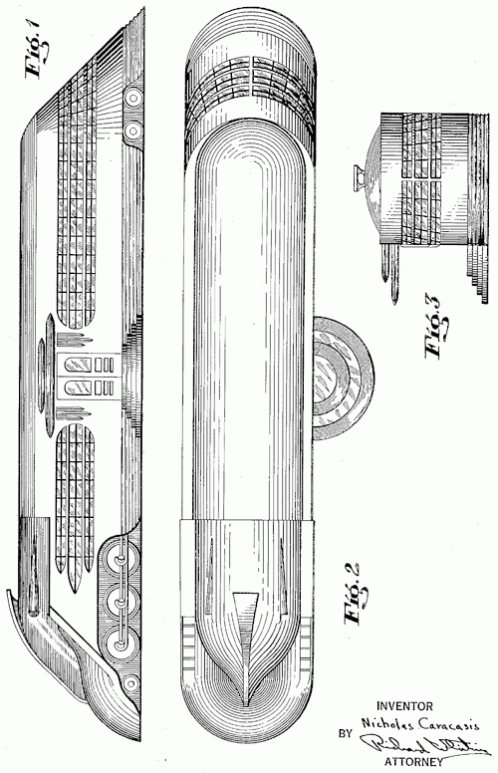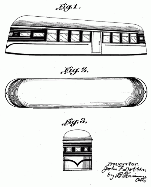 A railroad design for a restaurant assigned to the J.B. Judkins Company. 1940. Invented by John F. Dobben.