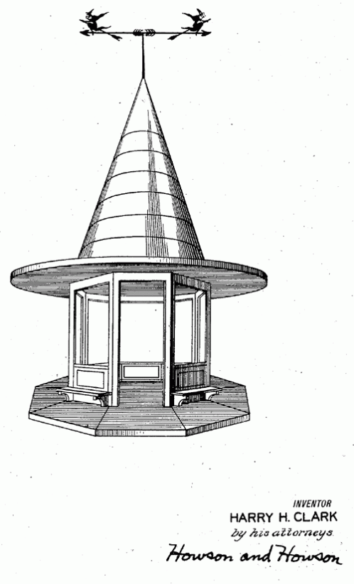 A portable witch-hat booth. Happy Halloween! 1927. Invented by Harry H. Clark.