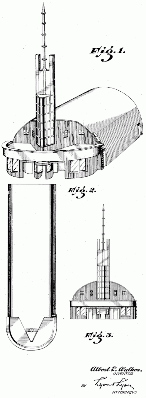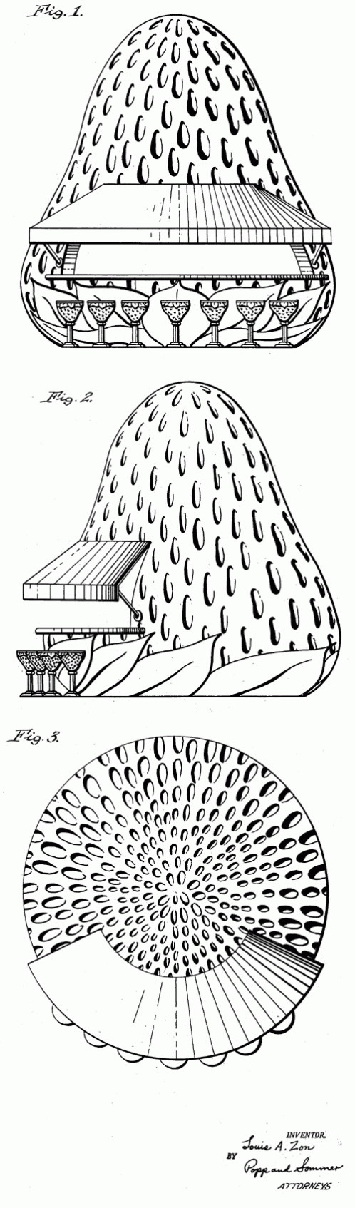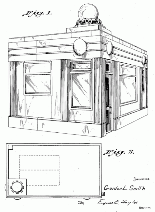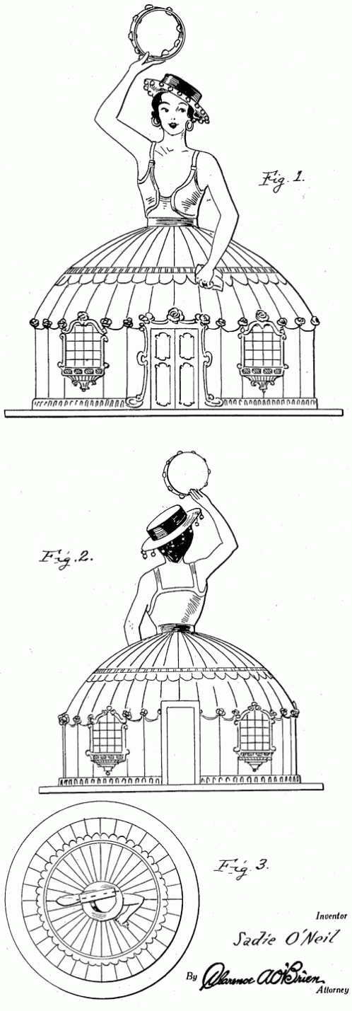 The patent says simply that this is an "ornamental design for a building." This would be certain to draw the attention of any passersby. 1932. Invented by Sadie O'Neil.