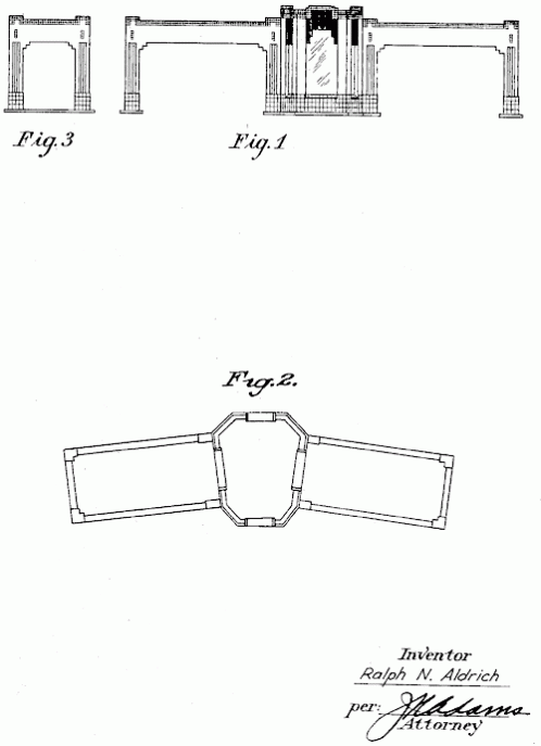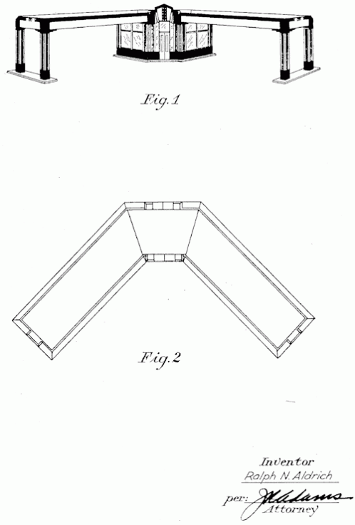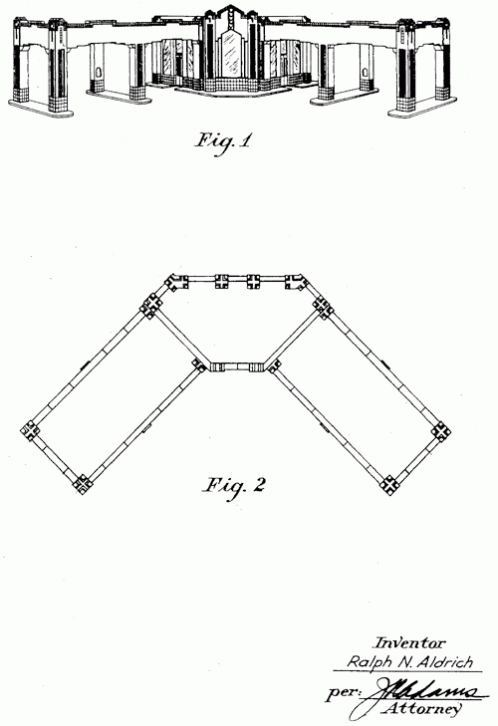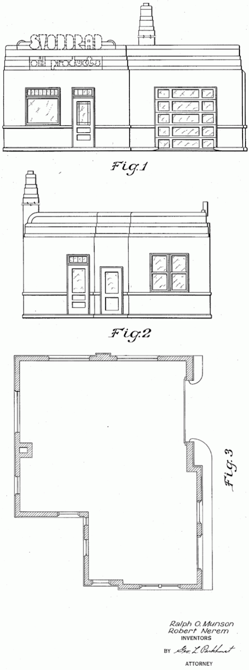 A more elaborate design for Standard Stations, Inc. 1932. Invented by Ralph N. Aldrich.