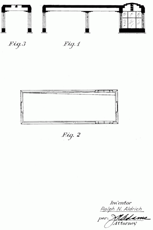 It's not clear from the patent application if this building design is meant for selling light bulbs, spark plugs or as a lab for inventors. 1933. Invented by Earl W. Payne