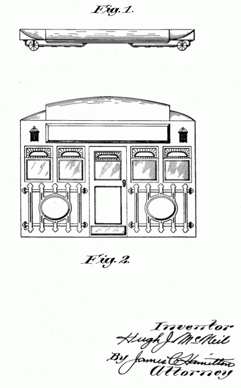 A store facade made to look like the tail end of a train. 1933. Invented by Hugh J. McNeil.