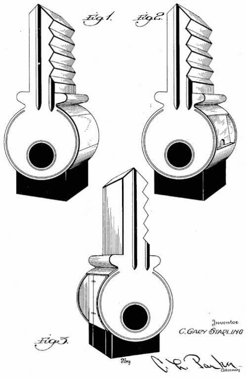 A kiosk for a locksmith. 1936. Invented by C. Gary Starling.