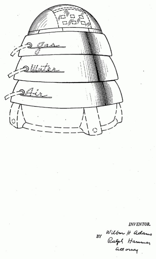 A design for a multi-purpose "dispensing unit for filling stations." How do you start this crazy thing? 1946. Invented by Wilbur H Adams.