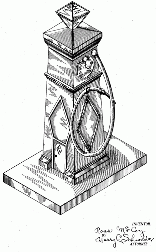 A gas station vending booth. 1929. Invented by Ross McCoy.
