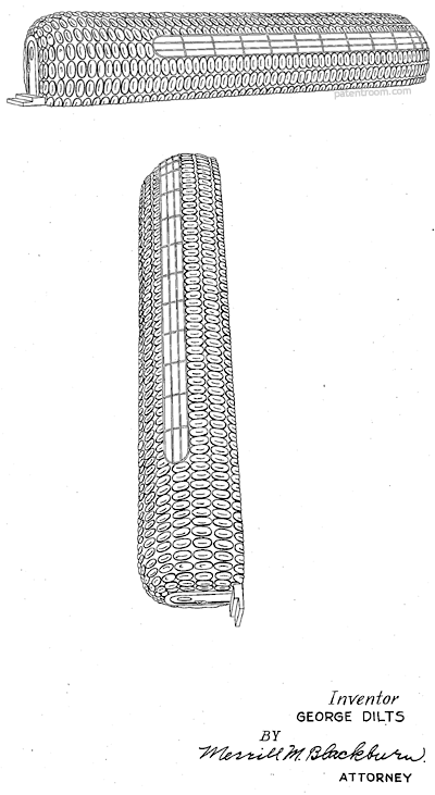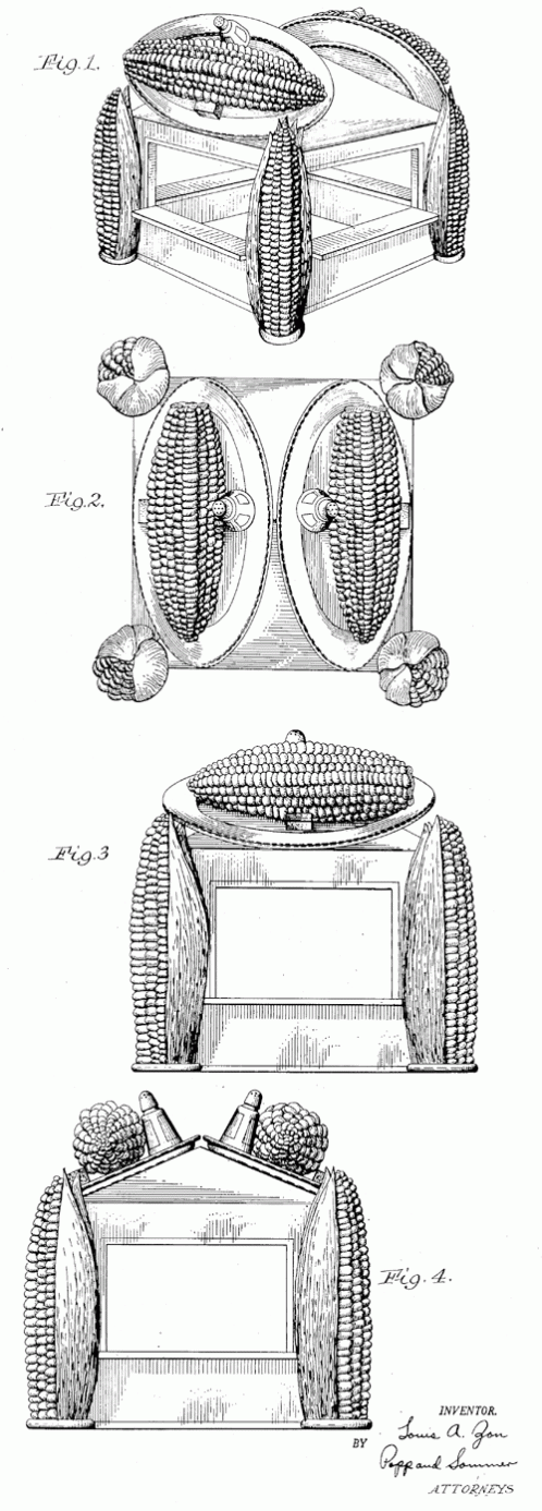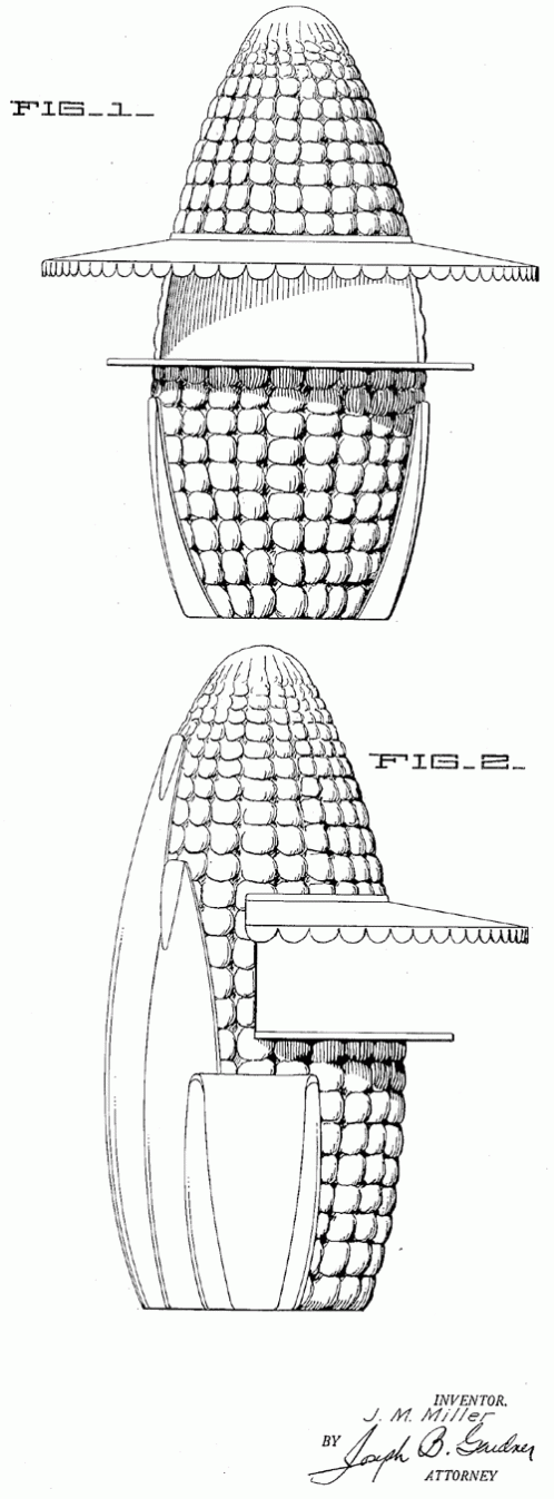 An ornamental design for a corn cob vending booth. 1936. Invented by John M. Miller.