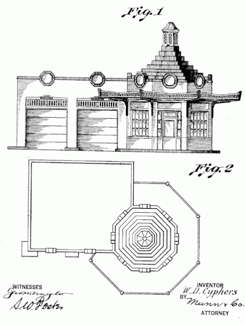 An example of architectural detail that went into gas stations in the 30s. This design was done for Ohio Oil Co. 1932. Invented by W. D. Cyphers.