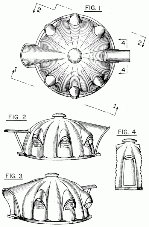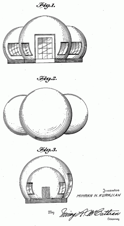 An effervescent design for a building. 1940. Invented by Mihran H. Kurkjian.