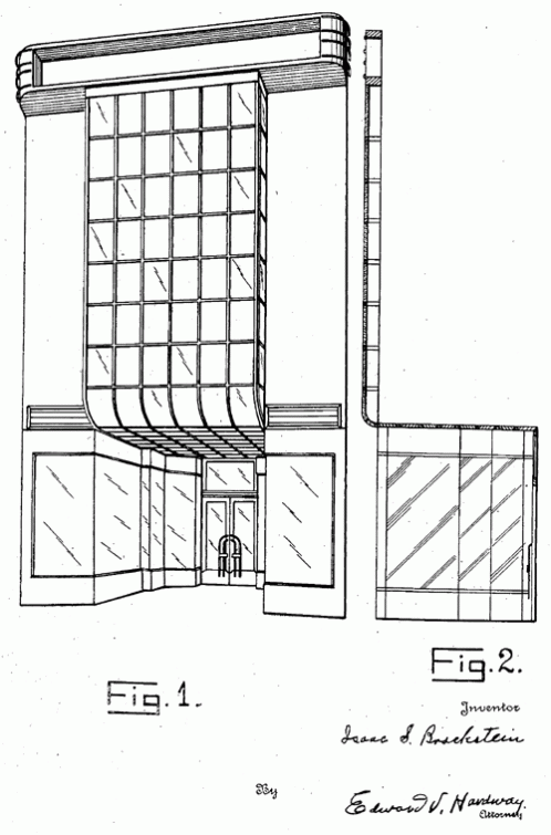 A building front design. 1939. Invented by Isaac S. Brockstein.